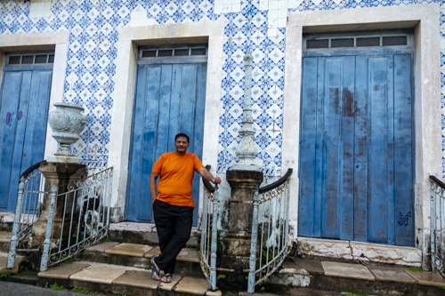 Cycling west into Goa, the colonial spirit takes over. Portuguese facades fading under salt and sun. Tiled mansions, some still wearing their azulejo tiles, partly wrapped in tangled banyan roots and dust. Balconies holding memories. Time moving, yet strangely still.