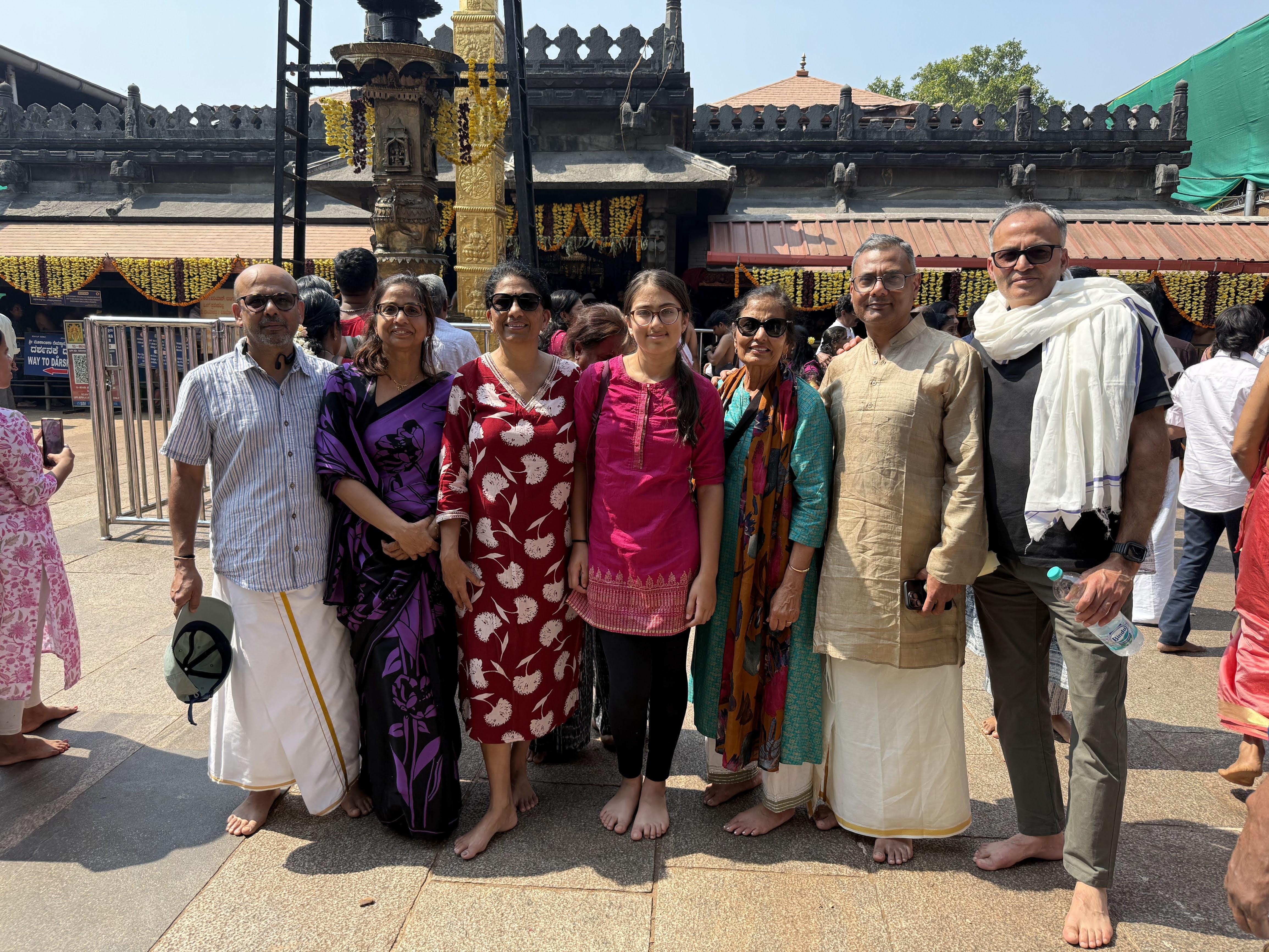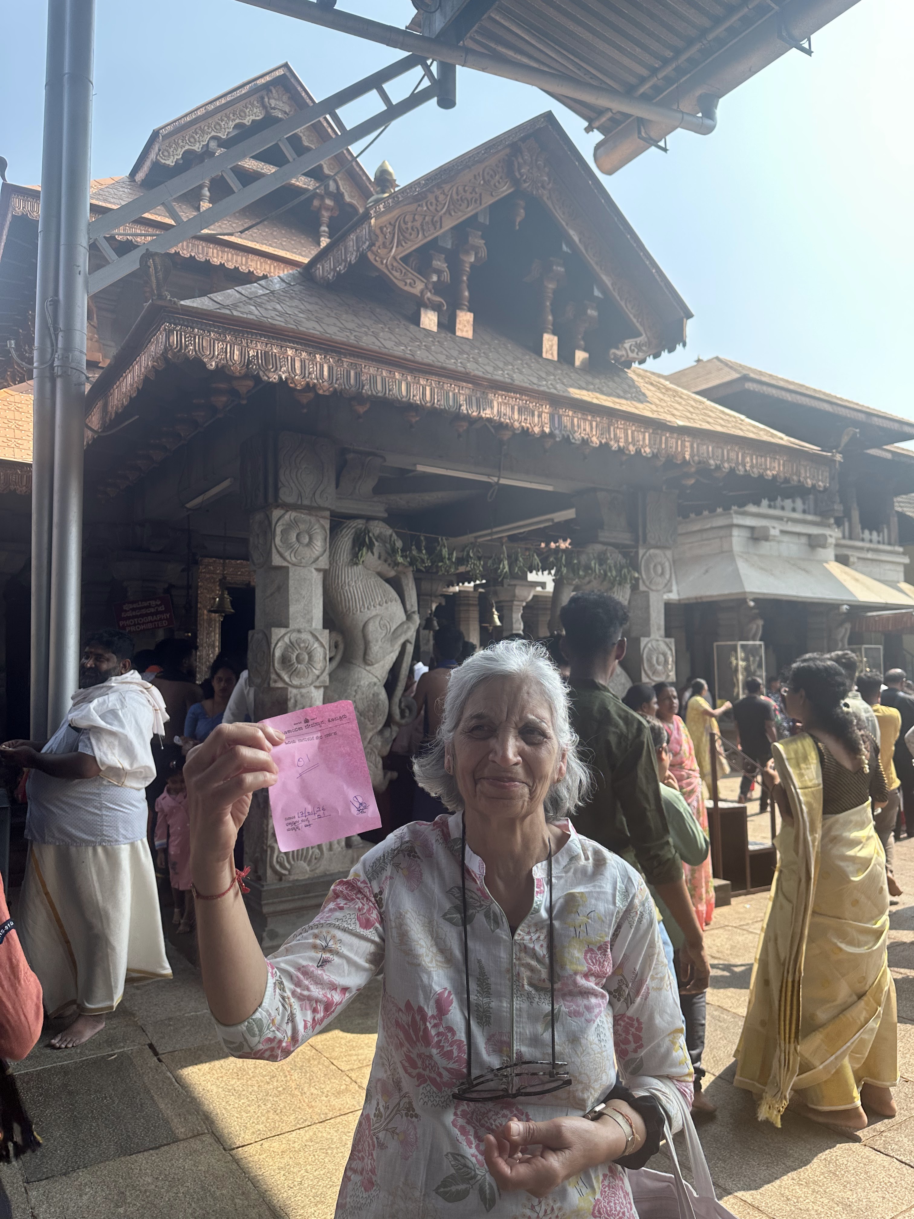 The temple wears a South Canara tiled roof -like a graduation cap, modest and grounded, hiding a golden gopuram within. Mookambika rests in the sanctum sanctorum. Quiet. Powerful. Unadorned in her certainty. As a group, we sought our individual levels of divinity, I mused, as I looked around to spot a sugarcane juice stall on the road side once outside .
