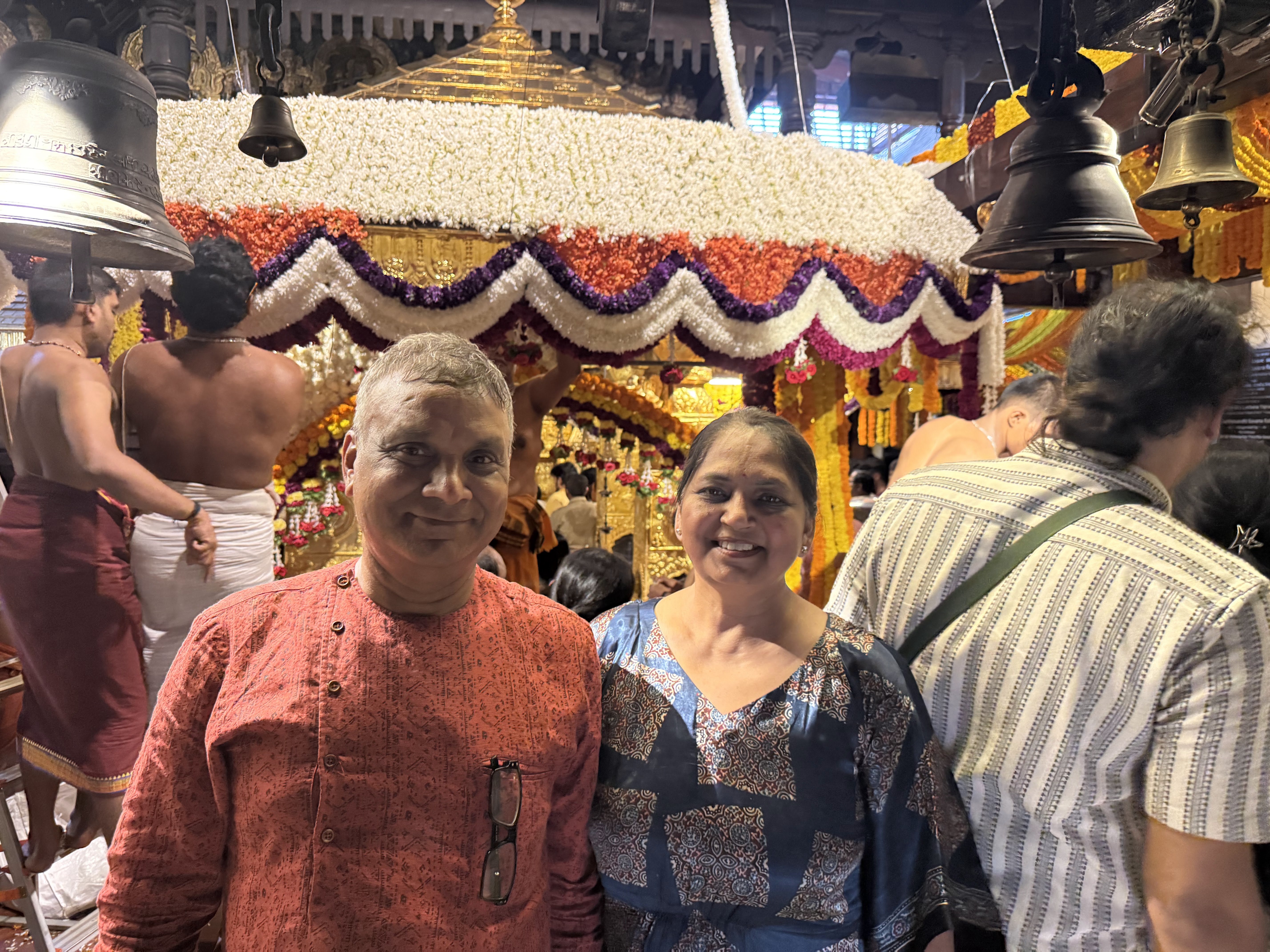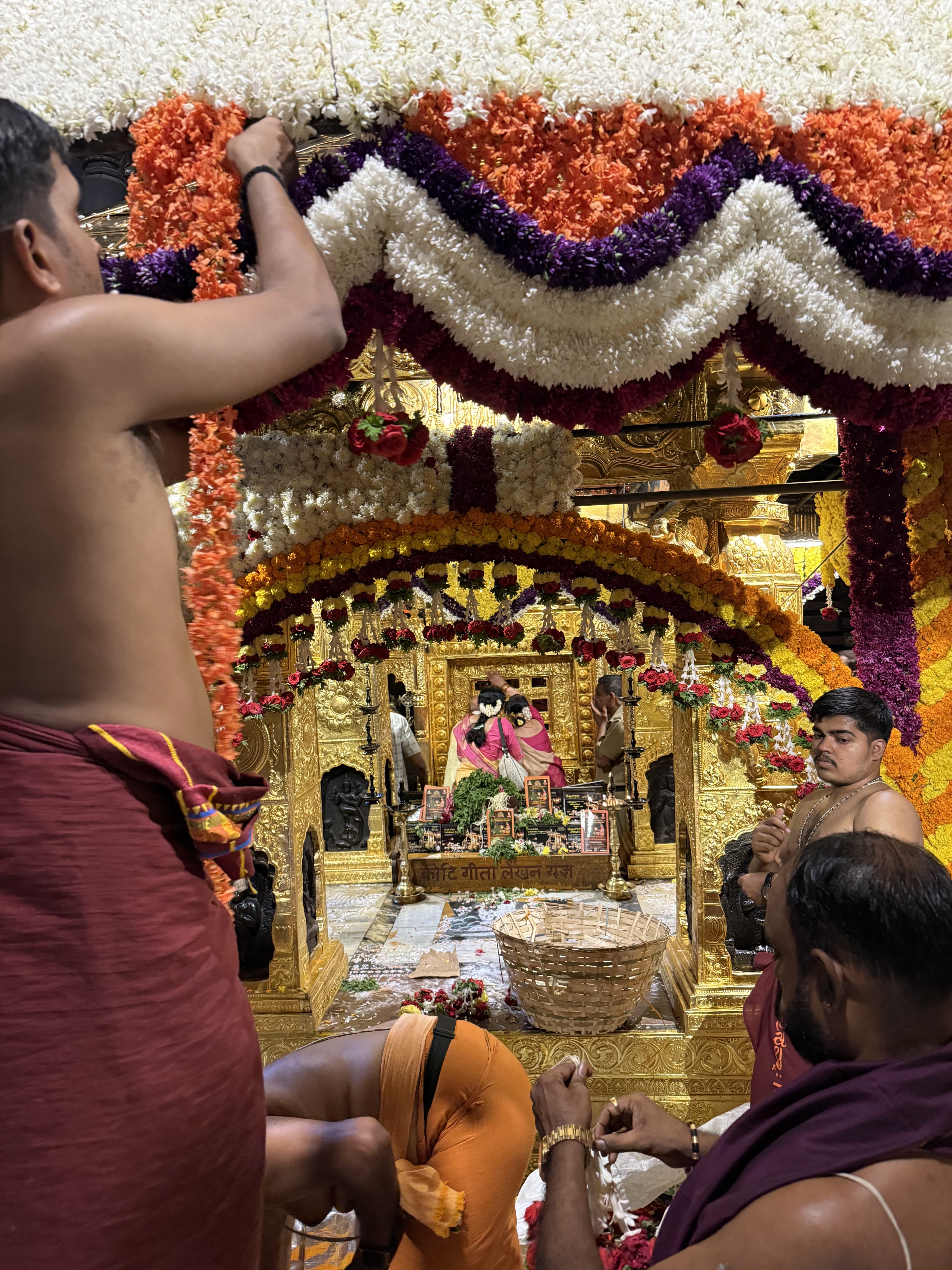 The shrine now carries a newly fitted Swarna Gopuram. Gold above. Stillness below.